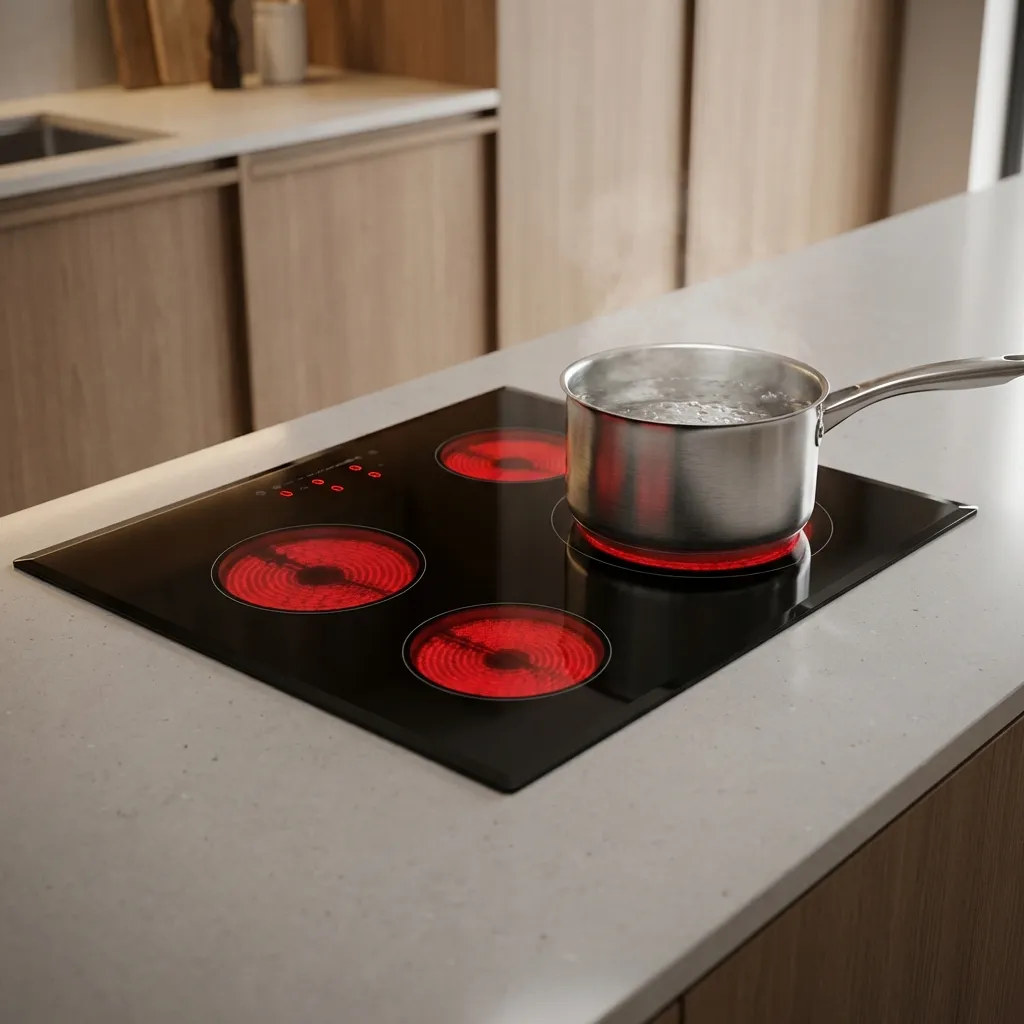 Під склокерамічною поверхнею розташована мідна котушка, по якій протікає високочастотний електричний струм. Це створює змінне магнітне поле. Коли ви ставите на конфорку посуд з феромагнітного матеріалу (того, що магнітиться), у його дні виникають вихрові струми (струми Фуко). Саме вони миттєво розігрівають метал посуду, тоді як сама скляна поверхня залишається відносно холодною, нагріваючись лише від контакту з гарячою каструлею.